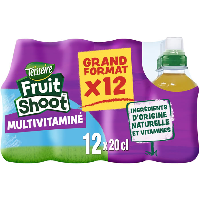 Découvrez Fruit Shoot de Teisseire, une boisson multivitaminée spécialement conçue pour les enfants. Alliant le bon goût des fruits (orange, pomme, pêche, abricot, banane) à la fraîcheur de l’eau, elle est moins sucrée et formulée avec des ingrédients d’origine naturelle, sans colorant artificiel.