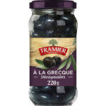 TRAMIER olives noires confites dénoyautées. Variété Hojiblanca d’Espagne, recette traditionnelle sans conservateurs. Goût équilibré et texture ferme, idéales pour l’apéritif et vos préparations culinaires.