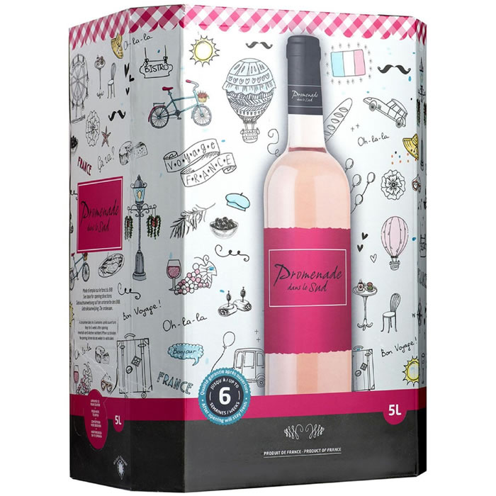 Vin rosé VIN DE FRANCE Promenade du Sud, 5 L, 11% vol. Marque ADVINI, EAN 3186127704575.